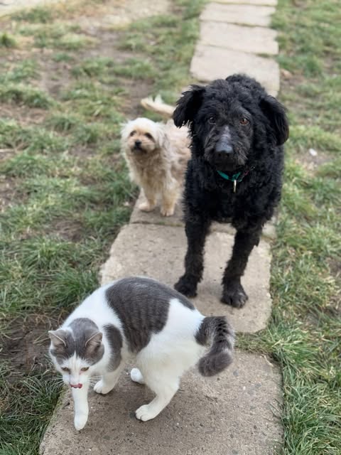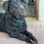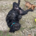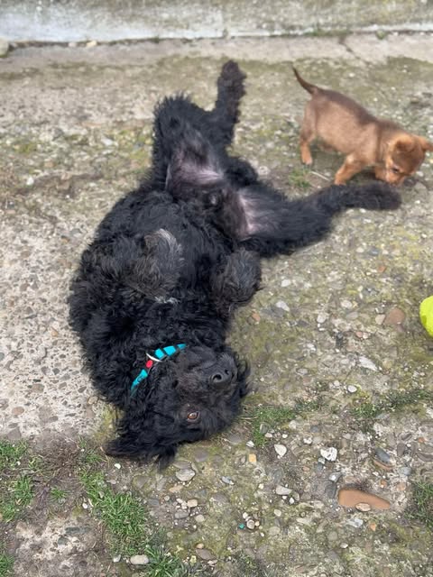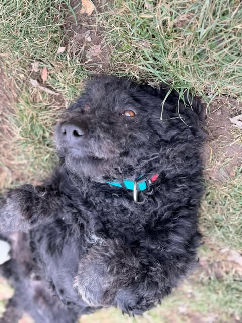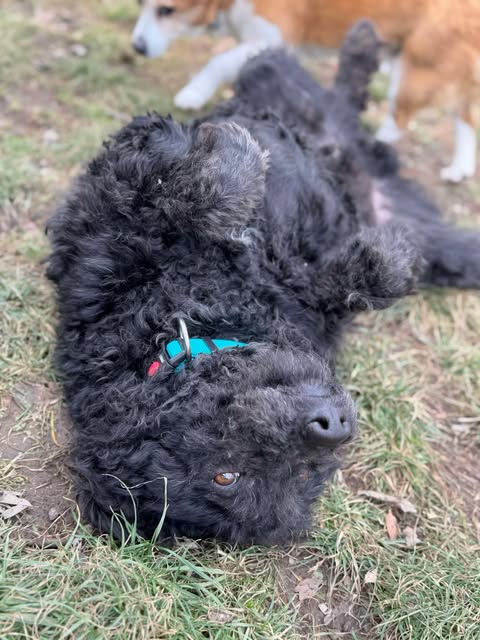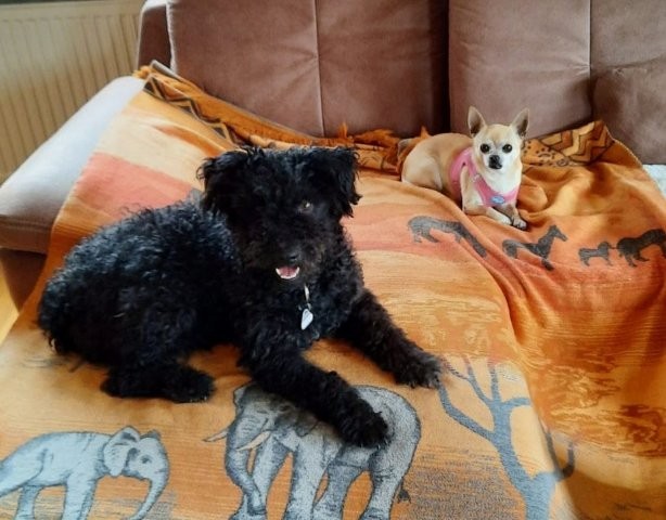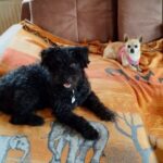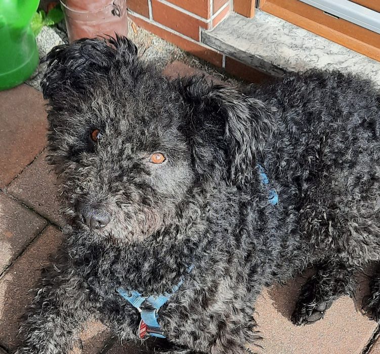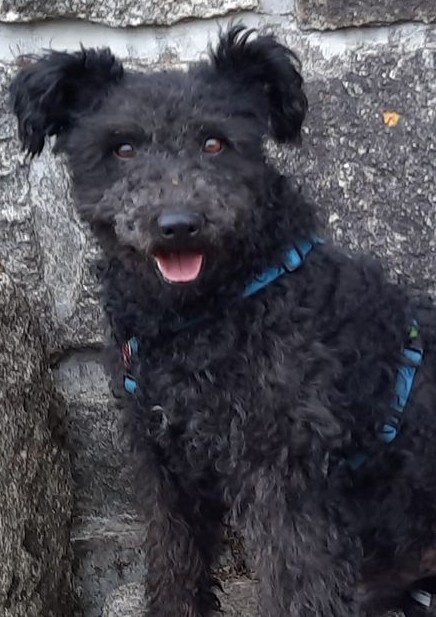 Otto, der mit seinem lockigen Fell und der von Geburt an fehlenden Rute wie ein schwarzes Schaf aussieht, aber vermutlich ein Pumi-Mischling ist, wurde in Rumänien auf der Straße gefunden. Da er sich menschenbezogen und anhänglich zeigte, ging seine Finderin davon aus, dass er einst ein Zuhause hatte und versuchte dieses zu finden. Leider ohne Erfolg. Vermutlich war er wohl doch ausgesetzt worden … Leider konnte er nicht bei seiner Finderin bleiben und wie so oft wurde unsere Tierretterin um Hilfe gebeten. Otto lebte dann dort auf dem Hof. Anfangs konnte er mit all den Annehmlichkeiten (Bettchen, Schlafplätze im geschlossenen Raum, Spielzeuge, …) überhaupt nichts anfangen. Er schien das alles nicht zu kennen, und unsere Tierretterin versuchte, ihm alles zu zeigen. Später lag er auch schon im Hundebettchen, aber spielen mochte er nicht, da er es ganz offensichtlich nicht kannte. Was er kannte, war die Leine. Das Laufen an der Leine verunsicherte ihn nicht. Auch die anderen Hunde interessierten ihn wenig. Er war neutral-freundlich zu allen Hunden, mochte aber nicht mit ihnen spielen. Katzen begegnete er ebenso. Menschen hingegen mag Otto. Sah er seine Pflegemama, sprang er sie vor lauter Freude gern an und ließ sich anschließend sein Bäuchlein kraulen.