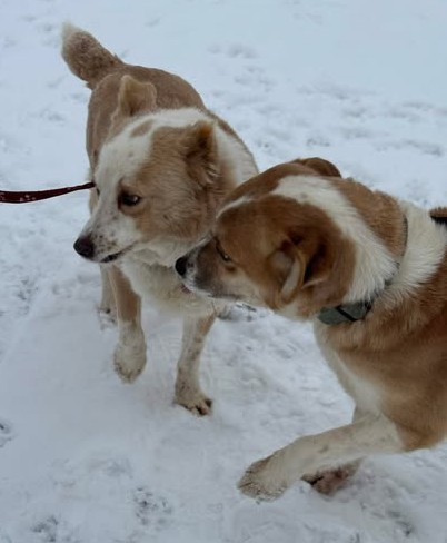 Gerlinde und Gesine sind vermutlich Mutter und Tochter – beide gezeichnet von ihrem schweren Leben: Mama Gerlinde fehlt ein Großteil ihres linken Ohrs und Gesine ist auf dem rechten Auge blind. Trotz alledem sind sie zwei ganz liebenswerte Hundedamen: Gerlinde sehr offen, freundlich und den Menschen zugewandt; Gesine auch freundlich, fremdelt aber am Anfang noch, braucht ein wenig Zeit, sich an neue Menschen zu gewöhnen. Doch beide sind sehr lieb.