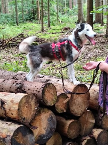 Lolita läuft gut an der Leine und macht gerne ausgedehnte Spaziergänge, wobei es ihr egal ist ob durch Wald, Wiese oder Stadt.