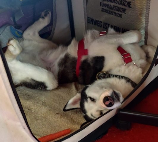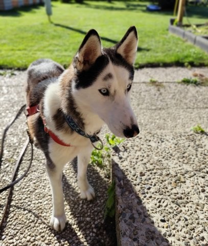 Die hübsche Lolita, die ein echter Husky, aber auch ein Husky-Mix sein kann, sollte von ihrem Besitzer in Rumänien abgeschoben werden. Er drohte, sie im Wald auszusetzen, sollten wir keine Lösung finden. Die fleißigen Tierretterinnen vor Ort waren schon länger mit ihm in Verhandlung und halfen, wo sie nur konnten. Lolita wurde auf deren Kosten kastriert und geimpft. Ihr Besitzer hingegen kümmerte sich um nichts, ließ sie in einem kleinen Gehege mit wenig Futter sich selbst überlassen.